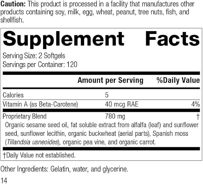 Standard Process Chlorophyll Complex - Immune Support, Antioxidant Activity, Skin Health and Hair Health Support with Vitamin A, Sunflower Lecithin, Buckwheat, Spanish Moss, and More - 240 Softgels
