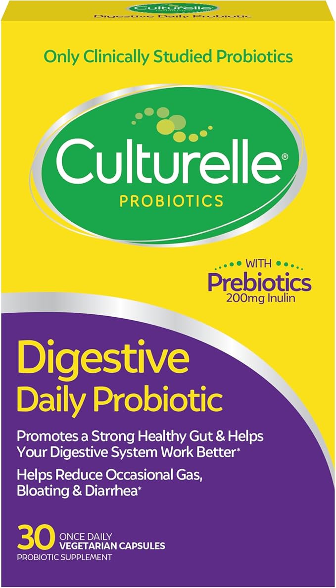 Culturelle Daily Probiotic Capsules For Men & Women, Most Clinically Studied Probiotic Strain, Digestive & Gut Health, Supports Occasional Diarrhea, Gas & Bloating, 1 Month Supply, 30 CT
