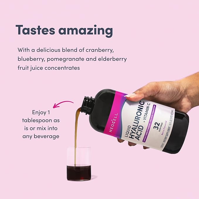 NeoCell Hyaluronic Acid Liquid with Vitamin C, Berry, 16 Fl Oz (Pack of 1) - Packaging May Vary