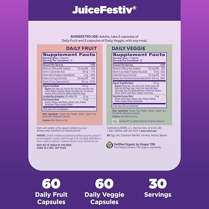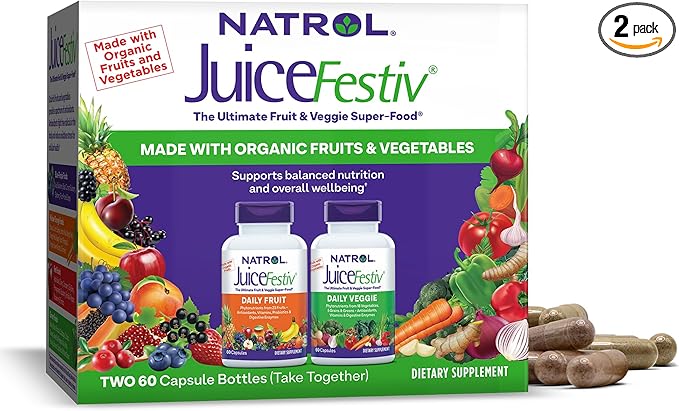 - DAILY FRUIT AND VEGETABLE SUPPLEMENTS: Natrol JuiceFestiv, the ultimate fruit and veggie super-food, is the simple and convenient way to provide your family with key nutrients to support a healthy and active lifestyle(1)