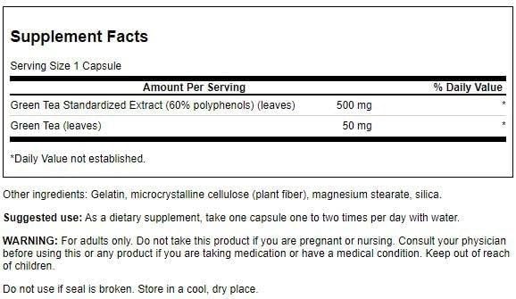 Swanson Green Tea Extract 500 Milligrams 60 Capsules