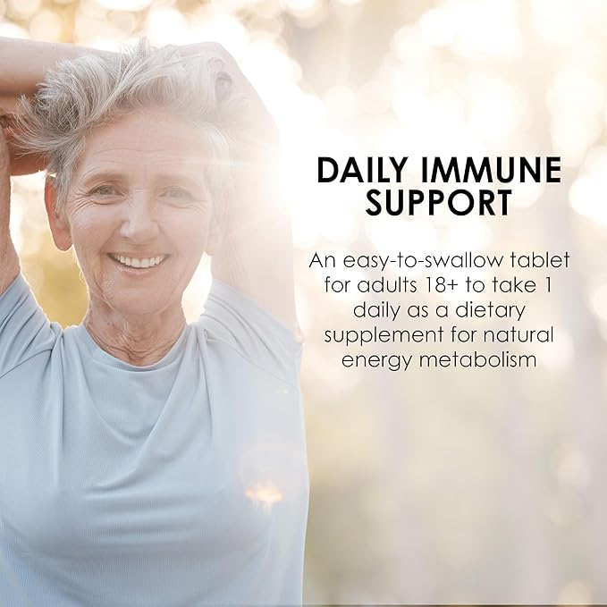 - DAILY IMMUNE SUPPORT: An easy-to-swallow tablet that adults 18+ take 1 daily as a dietary supplement for natural energy metabolism
