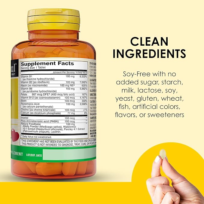 - VITAMIN B COMPLEX: Provides a full range of B vitamins, including B1, B2, B6, B12, niacin, and pantothenic acid, with folic acid and Biotin