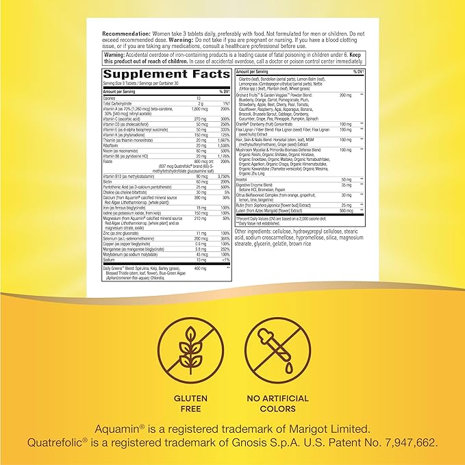 - Formulated with 23 vitamins and minerals, including 200% or more Daily Value of 14 vitamins and minerals per 3-tablet serving. With ultra-potent B-vitamins including methyl B12, vitamin A, vitamin C, vitamin D3, vitamin E, biotin, and zinc.