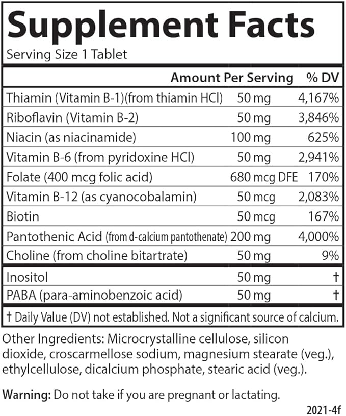Carlson - B Compleet 50, Balanced Vitamin B Complex, Energy Production, Cellular Support & Optimal Wellness, 100 Tablets