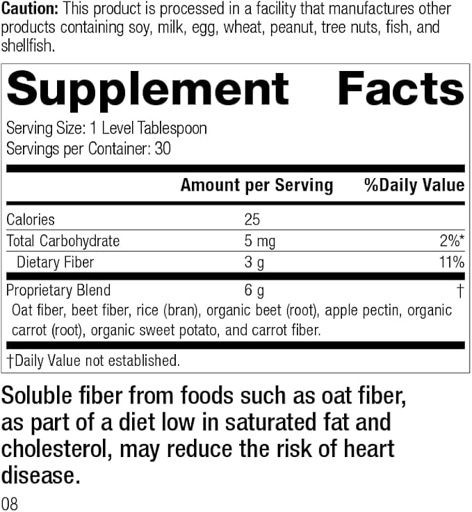 Standard Process Whole Food Fiber - Bowel, Digestion and Digestive Health with Rice Bran, Organic Carrot, Apple Pectin, Beet Root, Oat Fiber and Organic Sweet Potato - Vegetarian - 7 Ounce