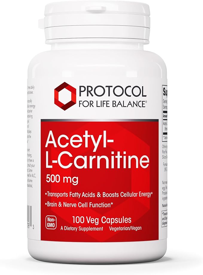 Protocol Acetyl- L-Carnitine 500mg - Energy Supplement, Nerve, and Brain Support - 100 Veg Caps