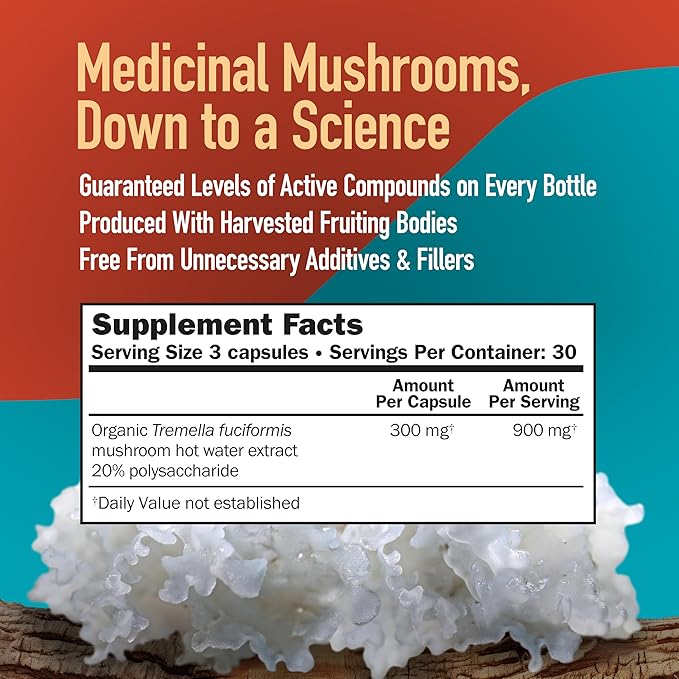 - "QUALITY INGREDIENTS: Our MushroomScience Shiitake Full Spectrum Extract is crafted with quality Tremella mushrooms. Each vegetarian capsule contains 300mg of Tremella extract, providing the natural benefits of this renowned mushroom in every dose.