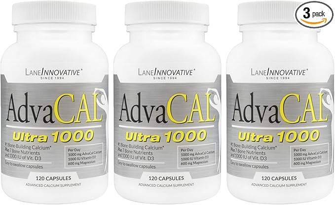 Lane Innovative - AdvaCAL Ultra 1000, Bone-Building Calcium*, Including Vitamin D3 and Magnesium, Easy Absorption (120 Servings) | Pack of 3