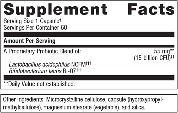 - Daily Probiotic Support: This daily probiotic features B. lactis Bi-07 and L. acidophilus NCFM probiotic strains recognized by World Gastroenterology Organization