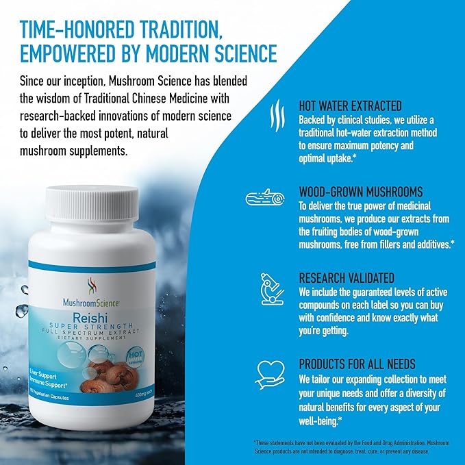 - "QUALITY INGREDIENTS: MushroomScience Reishi Super Strength Full Spectrum Extract is crafted with quality Reishi mushrooms. Each vegetarian capsule contains 400mg of pure Reishi extract, ensuring you receive the natural benefits of this revered mushroom in every dose.