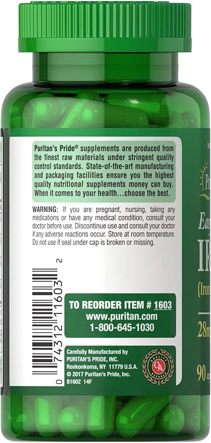 Puritan's Pride Easy Iron 28 mg (Iron Glycinate)-90 Capsules