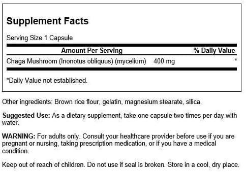 Swanson Full Spectrum Chaga Mushroom Antioxidant Immune Support 400 Milligrams 60 Capsules