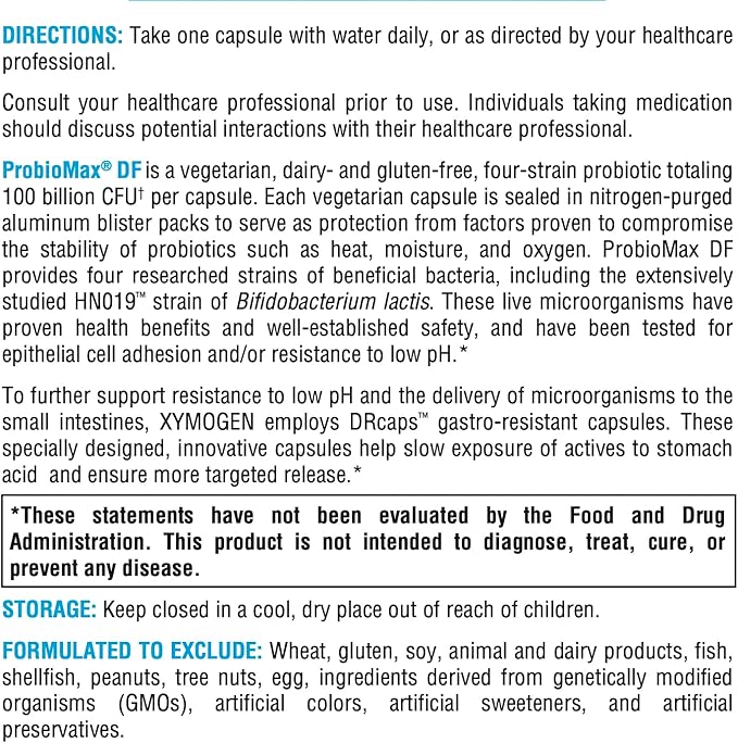 XYMOGEN ProbioMax Daily 100B - 100 Billion CFU Probiotic Supplement - Dairy Free Probiotics with Lactobacillus acidophilus + Bifidobacterium lactis - Formerly ProbioMax DF (30 Acid Resistant Capsules)