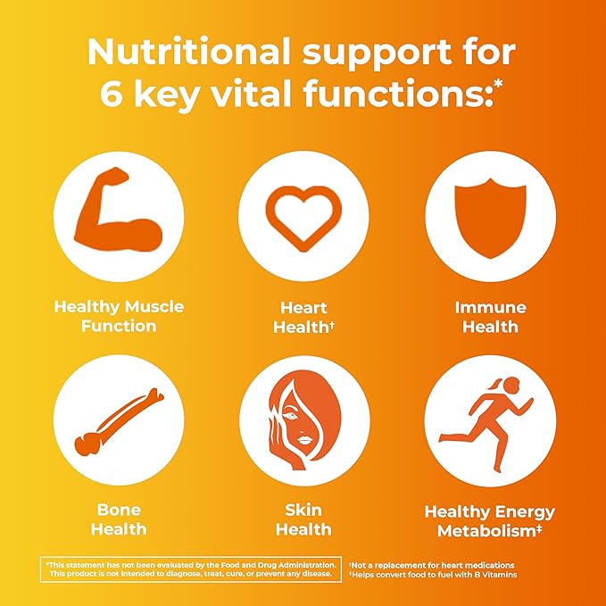 - Formulated to support: Bone health, immune health, skin health, heart health, and physical energy by helping convert food to fuel