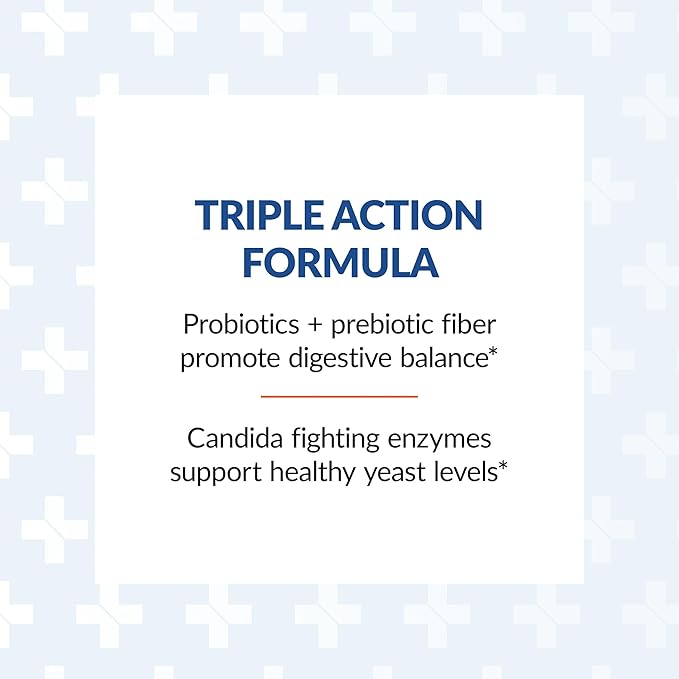 - 3-in-1 formula: 1 serving contains 13.6 billion CFUs of probiotics, a prebiotic fiber to nourish and stimulate the probiotics and a candida-fighting enzyme blend