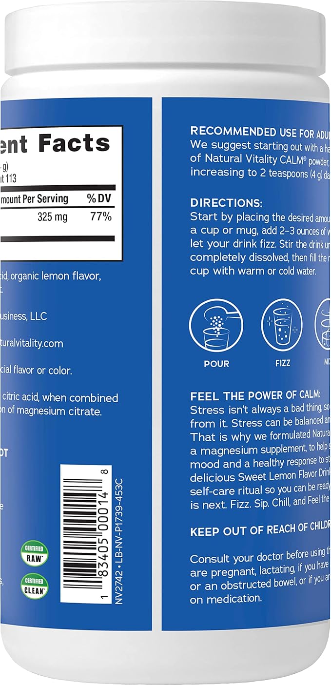 - DAILY SUPPLEMENT FOR ADULTS: Start with 1/2 teaspoon daily, gradually increasing to 2 teaspoons daily; just mix with water, fizz, sip, chill and feel the power of CALM