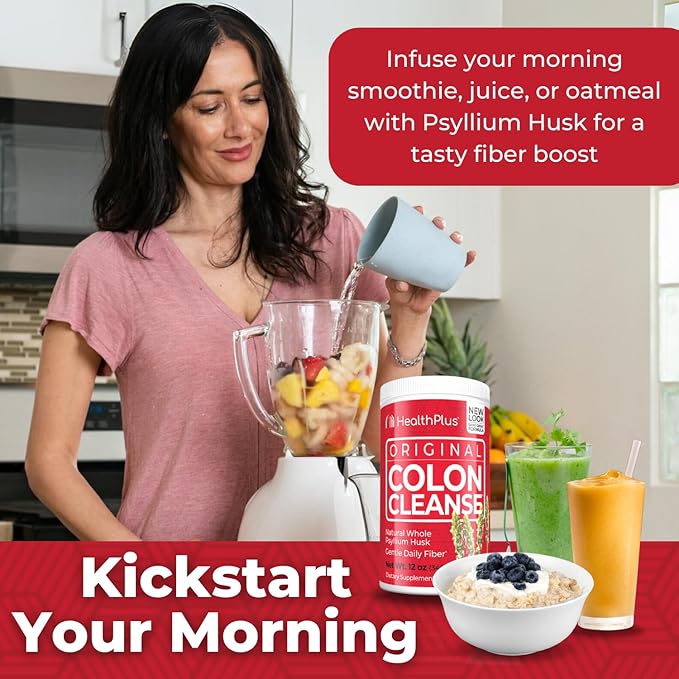 Health Plus Colon Cleanse - Natural Daily Fiber Powder- Gluten Free, Detox, Heart Healthy (12 Ounces, 48 Servings)