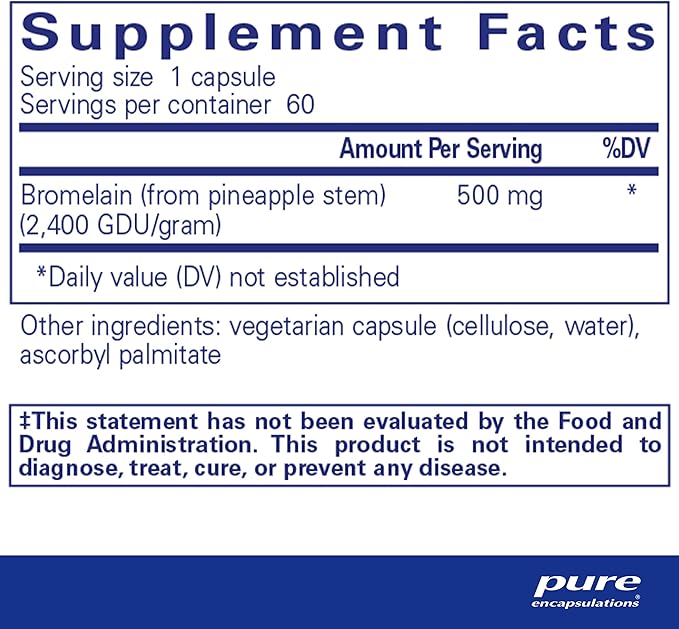 - Proteolytic Enzymes for Digestion: Pure Encapsulations Bromelain provides 500 mg of high-concentration bromelain for musculoskeletal health and digestive support*