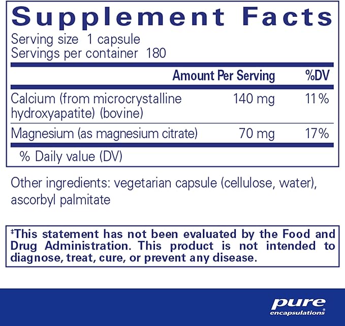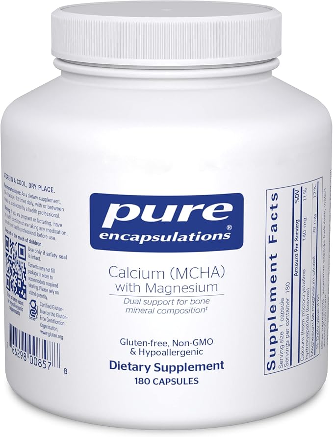 Pure Encapsulations Calcium MCHA with Magnesium | Hypoallergenic Dietary Supplement for Bone Support | 180 Capsules