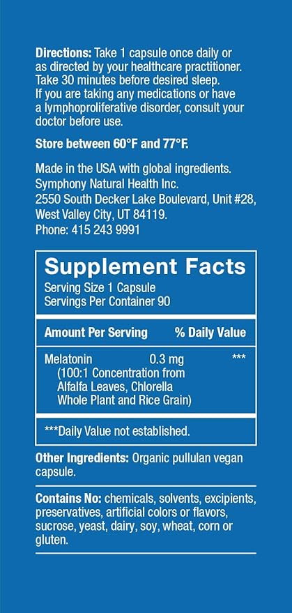 - SLEEP: Our low dose melatonin sleep aid (0.3mg or 300mcg capsules - the amount your body produces each day) has been shown clinically to be the ideal dose for restful sleep cycles, is non-habit forming and supports a healthy circadian rhythm.*