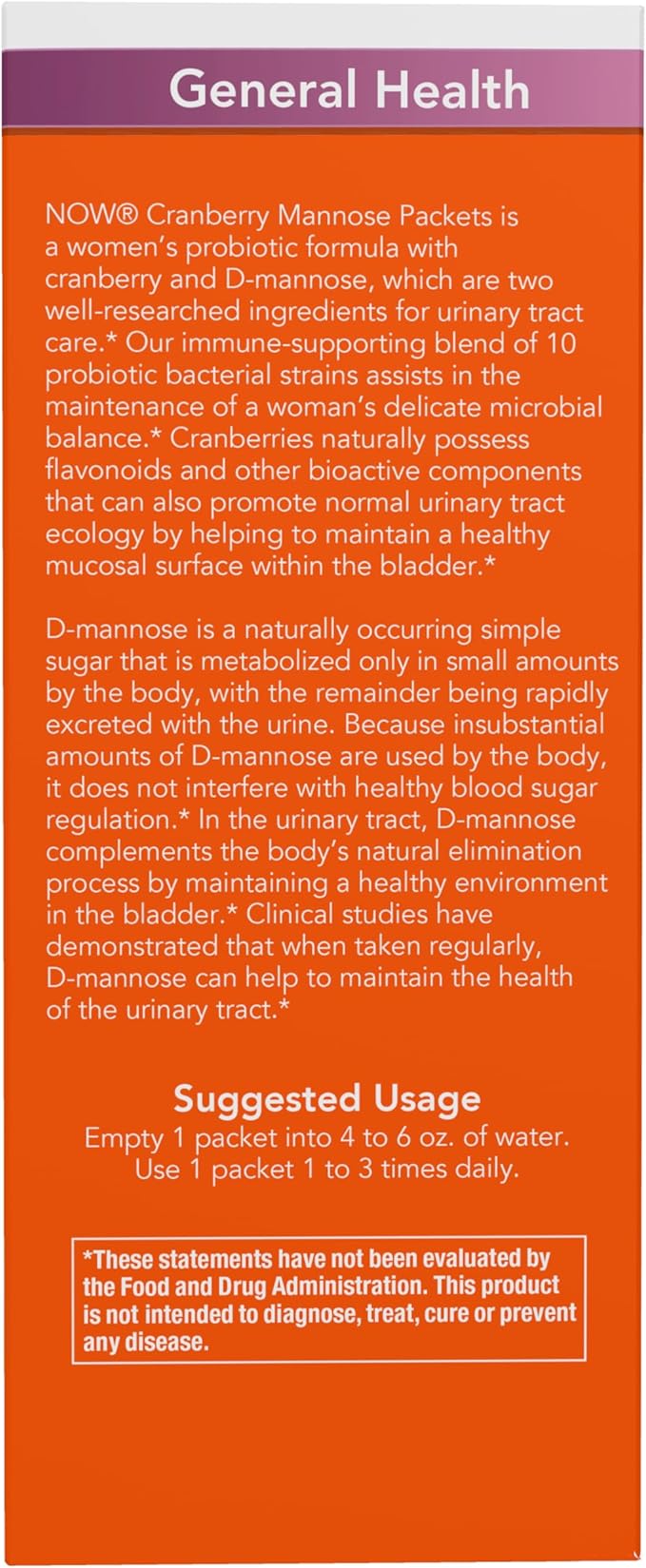 NOW Supplements, Cranberry Mannose + Probiotics with a blend of 10 Probiotic Bacterial Strains, 24/Box