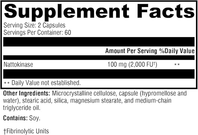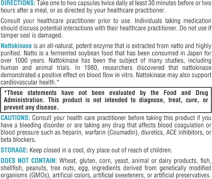 - Formulated to Exclude - This Nattokinase supplement does not include wheat, gluten, corn, yeast, soy, animal or dairy products, fish, shellfish, peanuts, tree nuts, egg, ingredients derived from genetically modified organisms (GMOs), artificial colors, artificial sweeteners, or artificial preservatives.