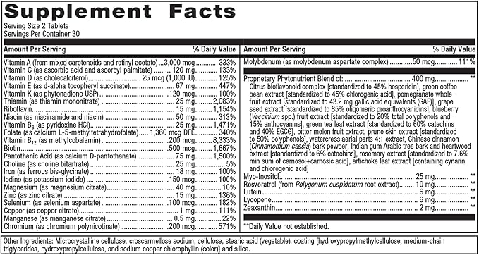 - PhytoMulti Supplement: Proprietary blend of 13 concentrated extracts and phytonutrients found in a healthy Mediterranean diet