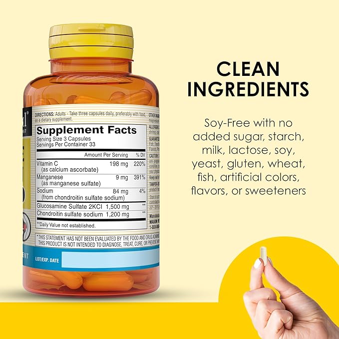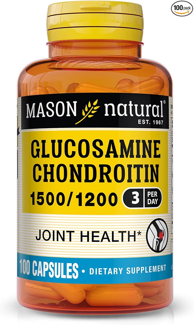 MASON NATURAL Glucosamine Chondroitin 1500/1200 3 Per Day with Vitamin C - Supports Joint Health, Improved Flexibility and Mobility*, 100 Capsules
