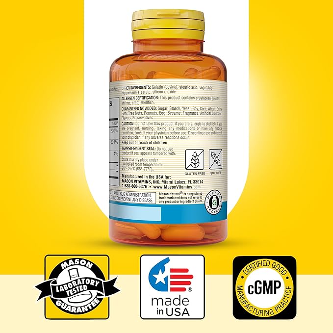 - TRUSTED FOR OVER 50 YEARS: Mason Natural has produced quality vitamin supplements for over five decades, adhering to cGMPs (current Good Manufacturing Practices) and US guidelines with rigorous testing & inspections
