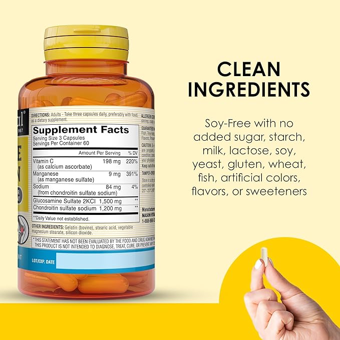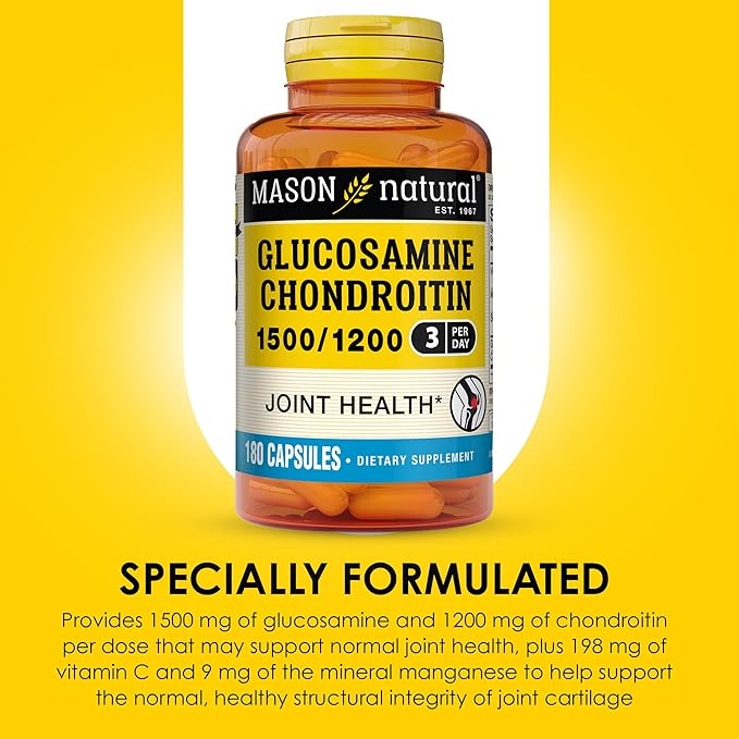 MASON NATURAL Glucosamine Chondroitin 1500/1200 3 Per Day with Vitamin C - Supports Joint Health, Improved Flexibility and Mobility*, 180 Capsules