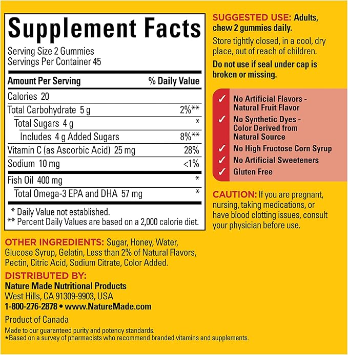 - Heart health support supplement: contains one 90 count bottle of Nature Made Fish Oil Gummies for a 45-day supply
