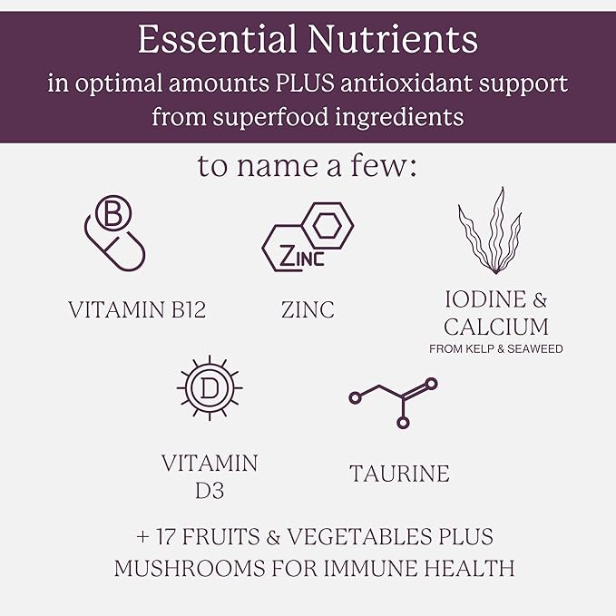 - Multivitamin for Health, Strength, and Longevity: Support your healthy diet with a daily dose of science-backed vitamins/minerals meticulously crafted from whole foods, including organic fruits and vegetables, enriched with powerful antioxidants and phytochemicals. Ideal for vegans or near-vegans, you’ll find the optimal amount of low dietary vitamins like B12, iodine, D3, and zinc ensuring that you get optimal exposure on your healthy journey.