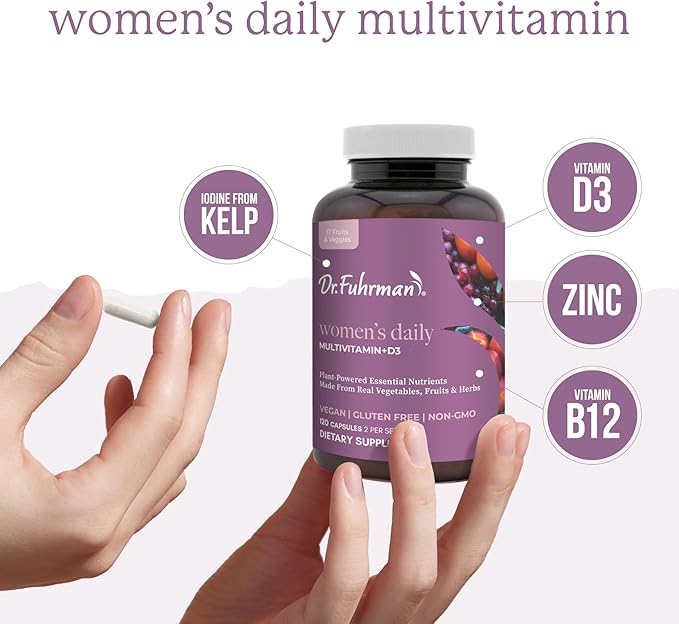 - Get the most from your multivitamin: Every individual deserves a daily multivitamin to fill any nutrient gaps in their diet without harmful or questionable ingredients. Ensure your body receives essential vitamins, minerals, and nutrients, especially if you follow a plant based or Nutritarian diet. Dr. Fuhrman's Women’s Daily Multivitamin is your trusted choice—a physician-researched and recommended formula for superior health. Don't settle for less, supplement smartly.