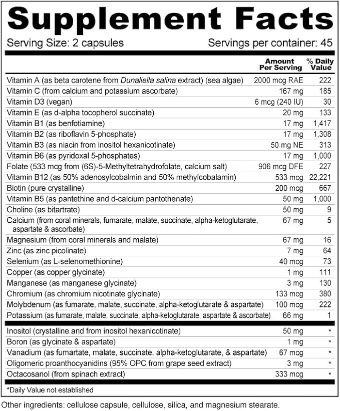 - Contains 100% coenzyme B vitamins, methylfolate