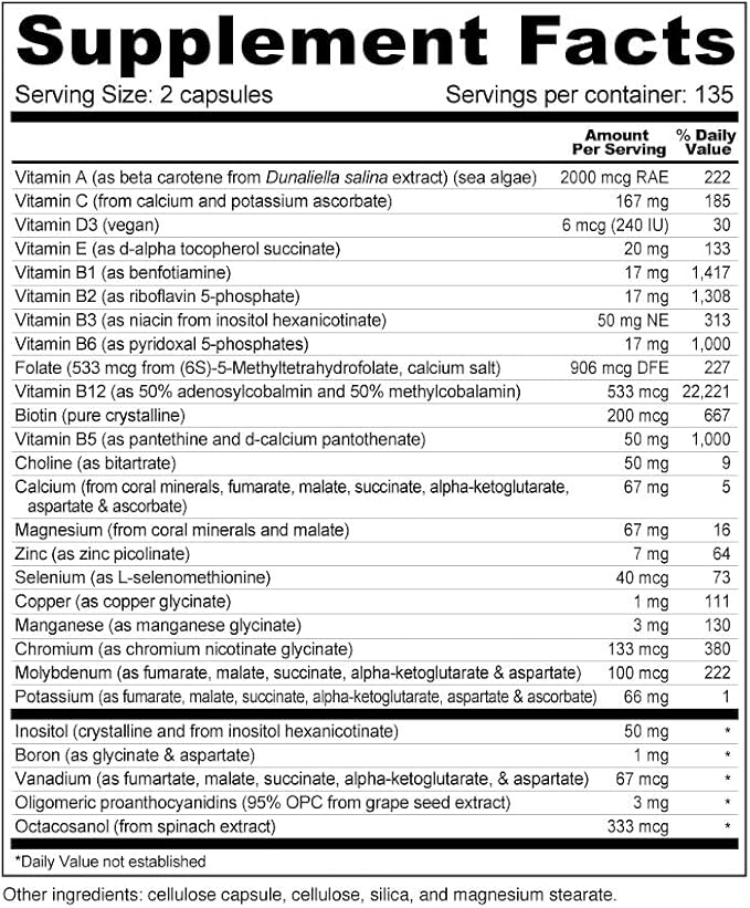 Wellness Resources Daily Energy Multiple Vitamin - 100% coenzyme B Vitamins Including Methylfolate and Methylated B12 with Other Important Cofactors for Energy, Stress, and Mood (270 Capsules)