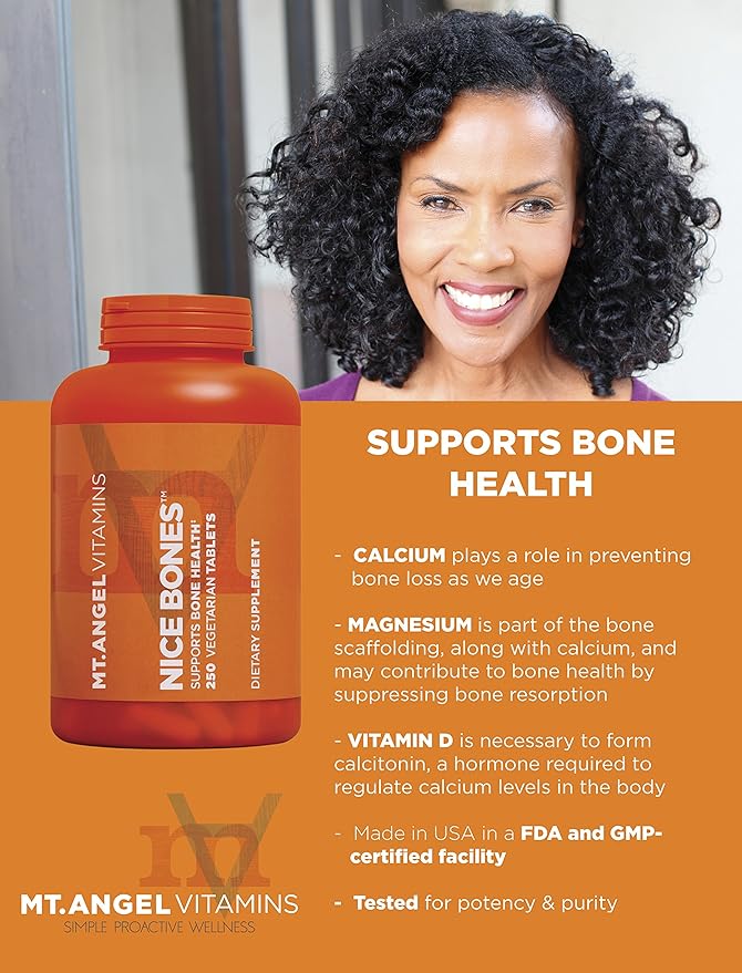 - Flavor : Mt. Angel Vitamins - Nice Bones, Supports Bone Health (250 Vegetarian Tablets)