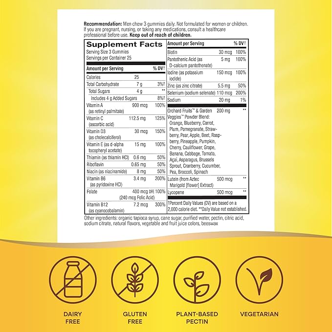 - Men chew 3 gummies daily.