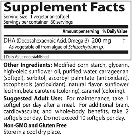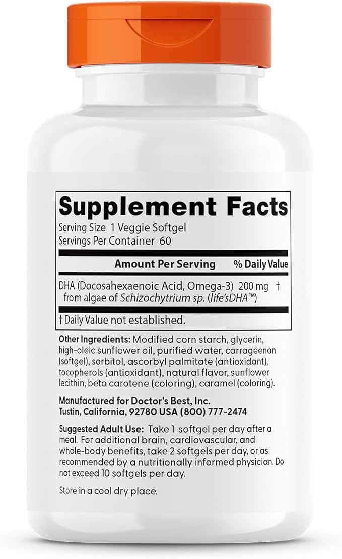 Doctors Best Vegan DHA from Algae, Supports Brain & Cardiovascular Health, Non-GMO, Gluten Free, Soy Free, Vegan 60 Veggie Softgels