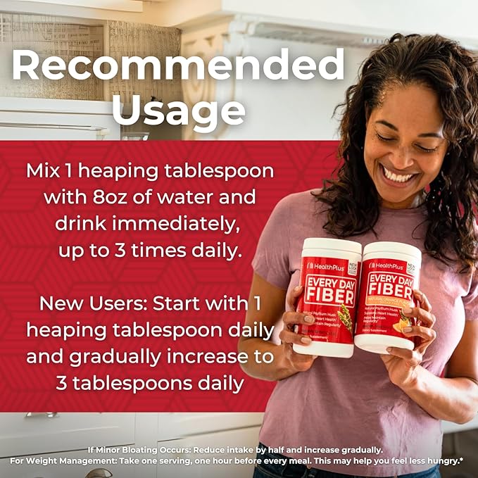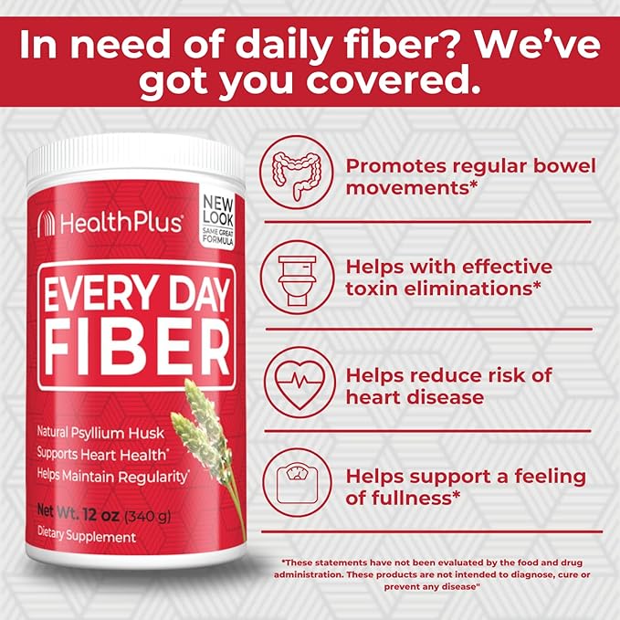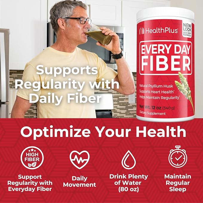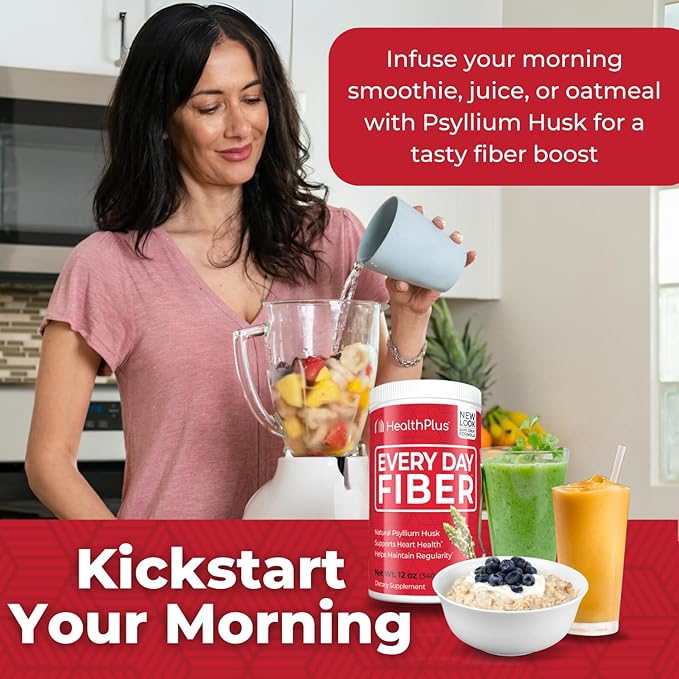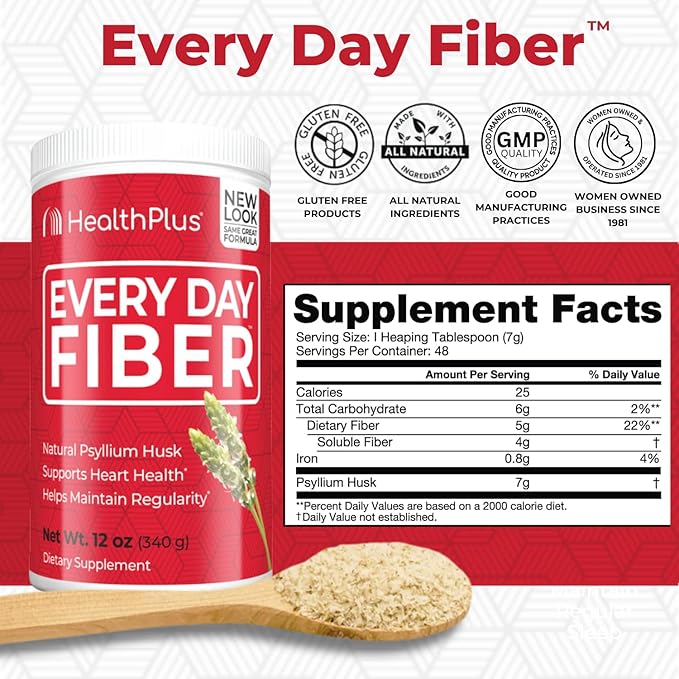 Health Plus Every Day Fiber Digestive Support | All Natural Daily Fiber To Reduce Bloating | Supports Heart Health | 12 Ounces, 48 Servings