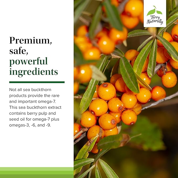 Terry Naturally Omega-7 Dry Eye Relief - Eye Health Supplement with Buckthorn Seed Oil - Dietary Supplement to Aid Dry Eye Relief - 60 Softgels