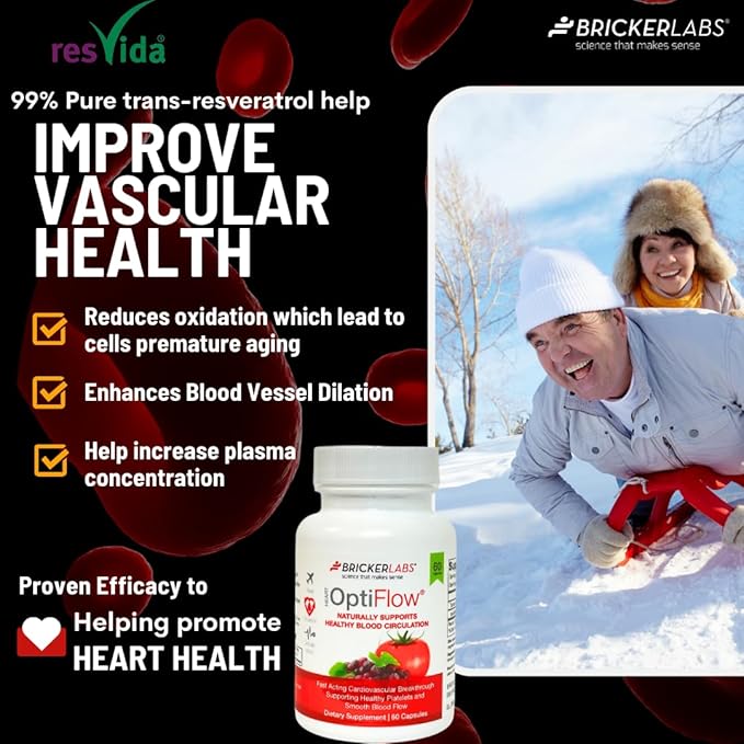 OptiFlow Blood Circulation Vitamins, Naturally Supports Healthy Blood Flow, Contains FruitFlow and resVida Trans resveratrol. Blood Optimizer Supplement, 30 Capsules