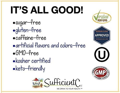 Sufficient-C High-Dosed 4000 mg. Vitamin C Lemon Peach Immune-Ade Drink Mix 250 gram Size - Refreshing with Generously Dosed L-lysine, Bromelain & 96% Pure, Caffeine-Free Green Tea Extract