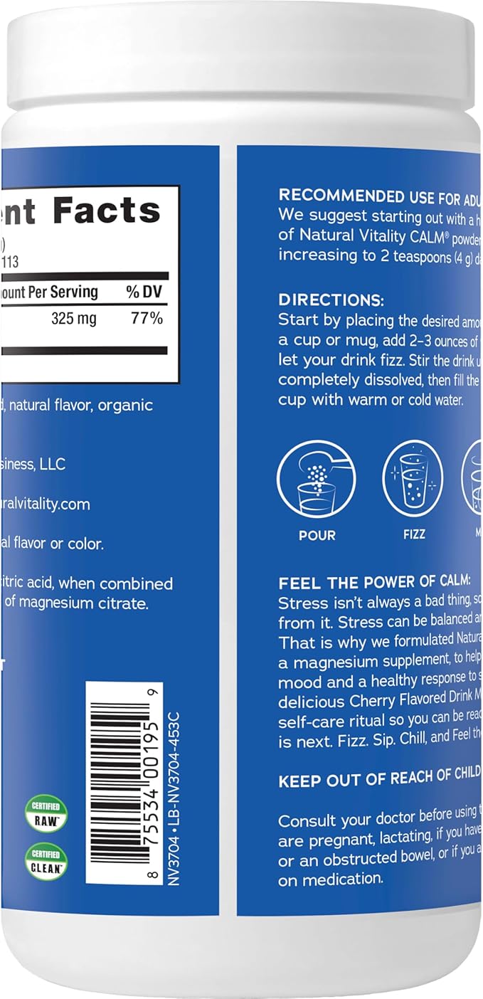 - DIETARY SUPPLEMENT: One 16 oz. bottle of Natural Vitality CALM Magnesium Supplement Drink Mix that helps support healthy magnesium levels and a healthy response to stress