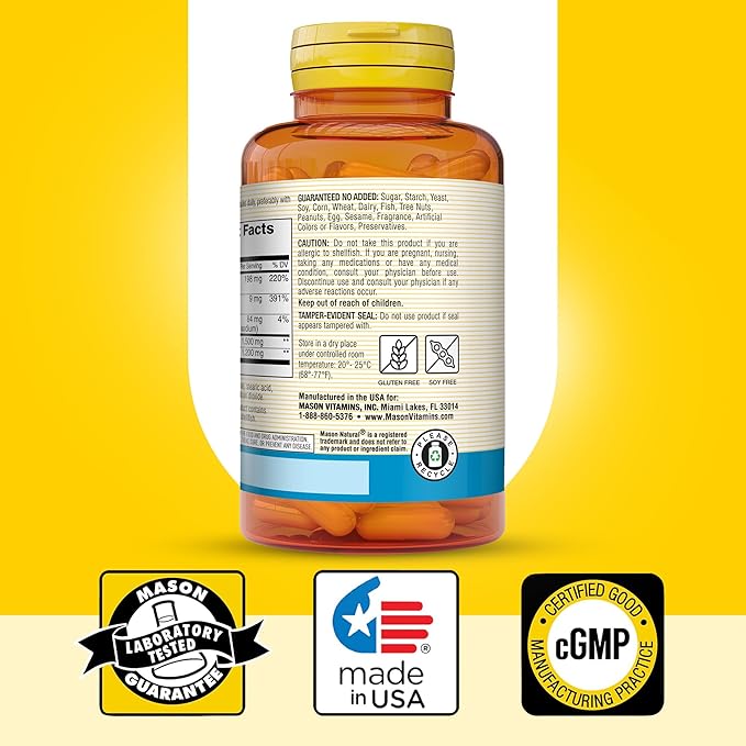 - TRUSTED FOR OVER 50 YEARS: Mason Natural has produced quality vitamin supplements for over five decades, adhering to cGMPs (current Good Manufacturing Practices) and US guidelines with rigorous testing & inspections