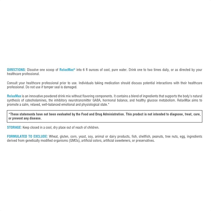 - RelaxMax aims to promote a calm, relaxed, well-balanced emotional and physiological state. Supports neurotransmitter balance and neuronal stabilization, both components of supporting brain health.*