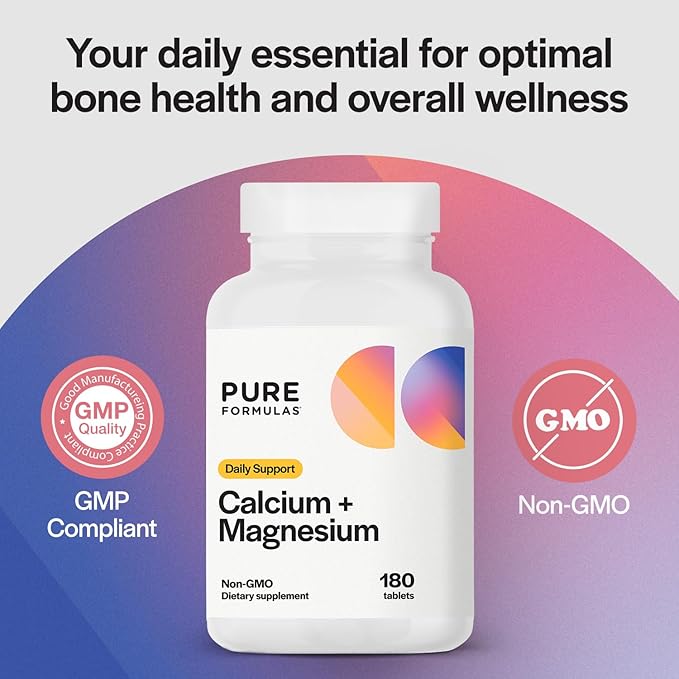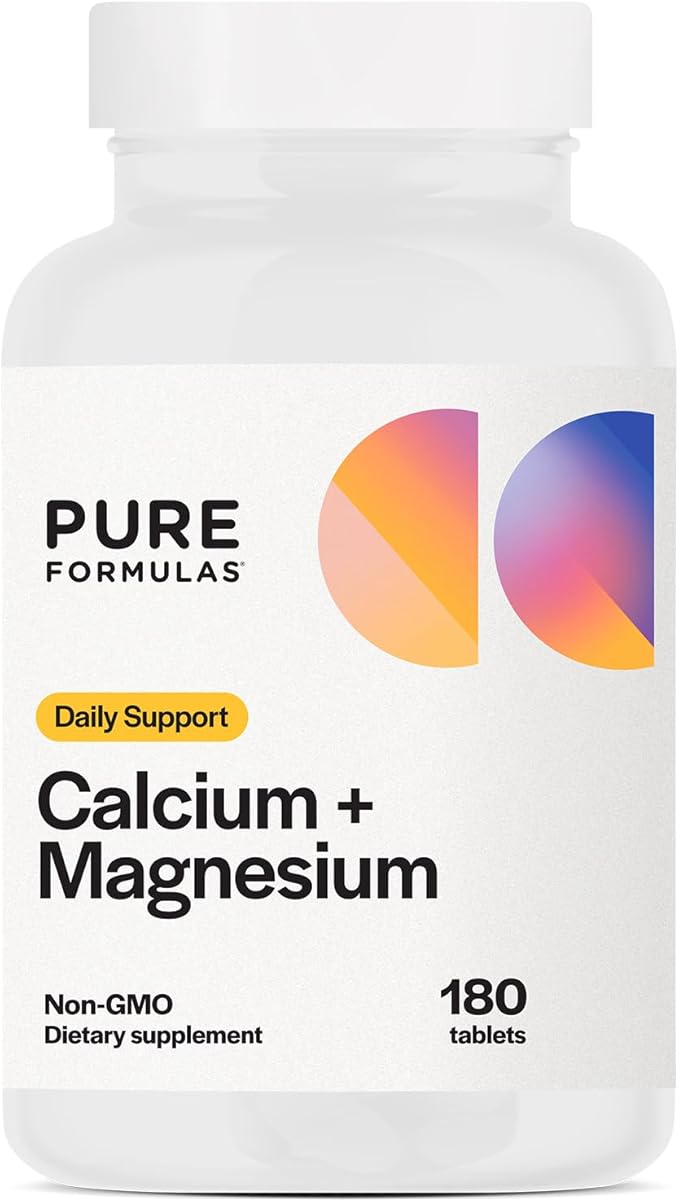 PureFormulas Calcium + Magnesium - Gluten Free Supplement Supports Bone Health & Overall Wellness with Magnesium Calcium Vitamin C Vitamin D & Boron, Allergen Friendly Non-GMO 180 Tablets