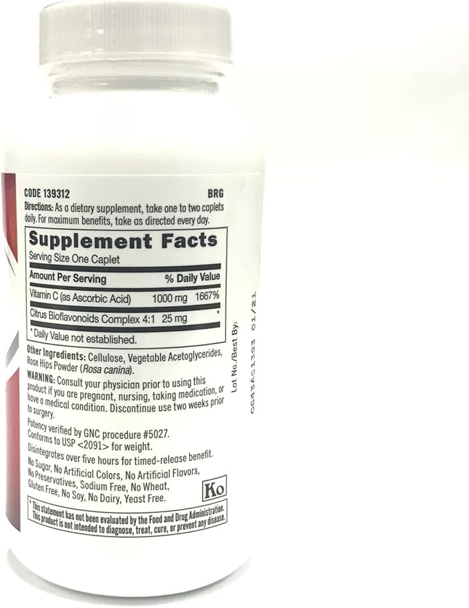 GNC Vitamin C 1000mg, 90 Caplets, Provides Immune Support