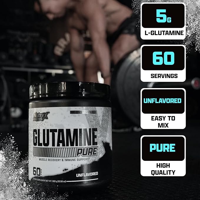 - 5G L GLUTAMINE PER SERVING - Nutrex Research Glutamine Powder delivers 5g of pure L-glutamine per serving to rapidly replenish glutamine levels in the body after workouts to support faster post workout recovery