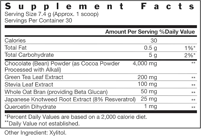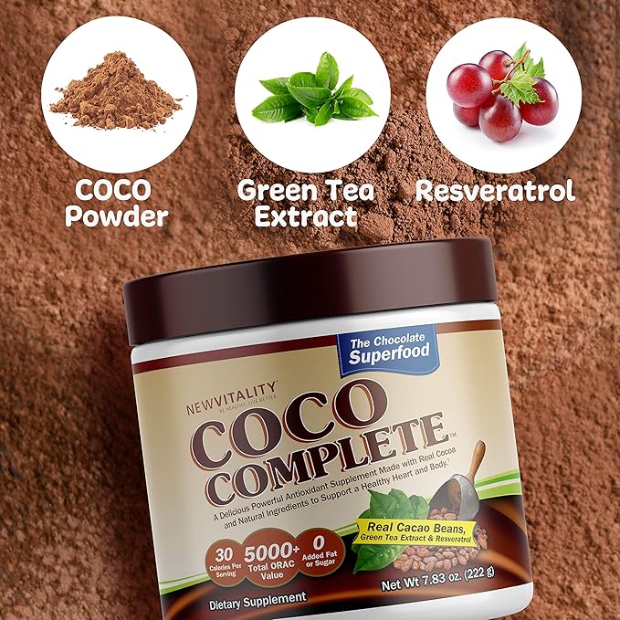 - BURSTING WITH ANTIOXIDANT POWER: We’ve harnessed 4,000 mg of an untarnished chocolate bean extract and combined it with extracts of green tea leaf and resveratrol. The result is a formula crammed with antioxidant power. In fact, if you look at the official rating system for antioxidant power (the “Oxygen Radical Absorbance Capacity”), Coco Complete scores an ORAC value of over 5,000! That’s on par with many high-antioxidant fruits!